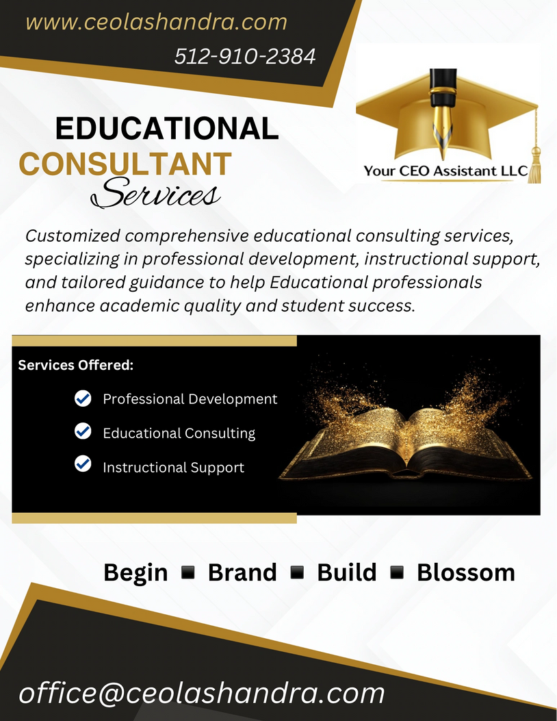 I provide dynamic solutions in professional development, educational consulting, and instructional support to empower Educational professionals with effective strategies, innovative programs, and personalized solutions that strengthen learning outcomes.